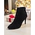 ankelstövlar i svart mocka för kvinnor – strass-utsmyckad rem, klack för kattungar och spetsig tå för fest- och kvällskläder