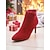Röda damstövlar i mocka med stilettmönster, dragkedja och spetsig tå, eleganta och chica, perfekta för jul, högtidsfester och formella tillfällen