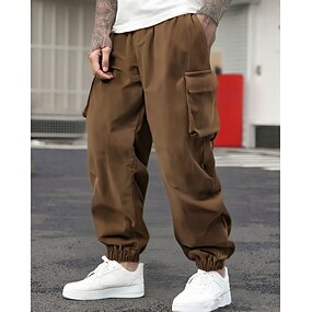 Herr Cargo träningsbyxor Joggingbyxor Joggare Långbyxor Manchesterbyxor Snörning Ficka Elastisk midja Slät Komfort Bärbar Utomhus Dagligen Helgdag Mode Klassisk Stil Svart Brun Oelastisk