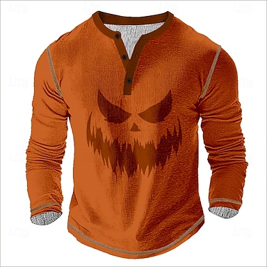 Herr Pumpa Henleytröja Våffel T-shirt Långärmad Vintage Dagligen Retro / vintage Utomhussport Ledigt Helgdag Höst Vår & sommar Alla årstider Mörkbrun Svart Orange Henley Henley T-shirt