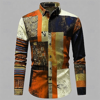 Herr Nyans Geometriska mönster Knapp upp skjorta Tryckta skjortor Långärmad Artistisk Abstrakt Subkulturell Casual Ledigt Vår & sommar Nedvikt Mönster Button-Down Purpur Orange