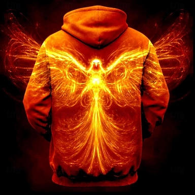 Herr 3D Fågel Fenix Huvtröja Tröja Häftig party Långärmad Rund hals Nattklubb Streetwear Gul Orange Snörning Höst Vinter Designer S M L XL XXL XXXL