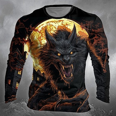 Herr Varulv T-shirt Långärmad T-shirt 3D-tryck Rund hals Skjorta Designer Retro / vintage Gata Ledigt Dagligen Svart Sommar Vår Höst Kläder S M L XL XXL XXXL