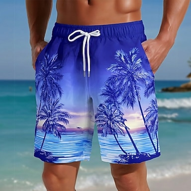 Herr Kokosnötsträd Gradientfärg Tropiska växter Badshorts Baddräkter Badshorts Boardshorts Medium Midja Hawaiisk Utomhus Semester Vardag Sidfickor Mesh foder Elastisk dragsko i midjan Designer Kläder
