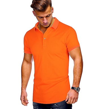 Herr Golftröja Golf pikétröjor Arbete Ledigt Kavajslag Kortärmad Grundläggande Modern Slät Knappar Sommar Normal Svart Vit Gul Rubinrött Marinblå Kungsblå Golftröja