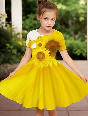 Flickor 3D Blomma Klänning Kortärmad Sommar Vår Semester Dagligen Helgdag Skön Ljuv Barn 4-12 år Vardagsklänning Knälång Normal