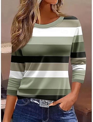 Dam T-shirt Långärmad Crew Neck Långärmad Tunika Grafisk Geometrisk Randig Elegant Vintage Rund Hals Vanliga Toppar Daglig Utgång Helgtryck Gul Röd Blå Lila Grön Förhöst