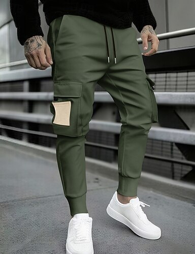 Herr Militärbyxor Långbyxor Casual byxor Snörning Elastisk midja Flera fickor Slät Komfort Mjuk Fullängd Utomhus Ledigt Dagligen Mode Streetwear Svart Grön