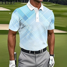 Herr Geometrisk Golf Sport pikétröjor Kortärmad Polotröjor Kavajslag Ledigt Fritids- 3D-utskrift Knappar Sommar Blå Ljusgrön Rubinrött