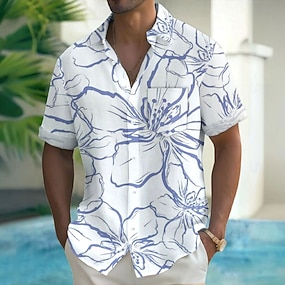 Herr Blomtryck Blommor Skjorta Casual skjorta Knapp upp skjorta Kortärmad Mode Casual Semester Helgdag Streetwear Sommar Vår Nedvikt 3D-utskrift krage skjortor Främre en ficka Vit