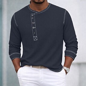 Herr Skjorta Våffelskjorta Popover skjorta Casual skjorta Knapp upp skjorta Rodnande Rosa Marinblå Blå Purpur Grön Långärmad Slät Rund hals Ledigt Dagligen Kläder Elegant Mode Ledigt