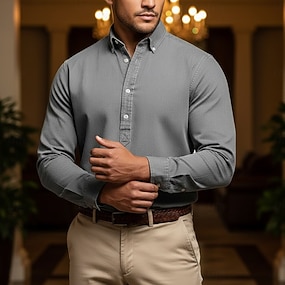 Herr Skjorta Våffelskjorta Casual skjorta Knapp upp skjorta Vit Rodnande Rosa Blå Khaki grön Ljusgrå Långärmad Slät Kavajslag Dagligen Utekväll Slät Kläder Mode Modern Ledigt Bekväm