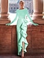 Sjöjungfru trumpet Hovsläp Balklänningar Kvälls klänningar Balklänning Formell klädsel Kändis Stil Lyxig Glitter och glans Långärmad Prydd med juveler Karnival Jul Satäng med Strass