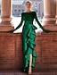 A-linje Telång Cocktailklänningar Festklänningar Elegant Glittriga Långärmad Rund hals Jul Bröllopsgäst Satäng Sammet med Plisserat Paljett