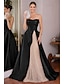 Åtsmitande Golvlång Kvälls klänningar Balklänning med överkjol Formell klädsel Elegant Den lilla svarta Ärmlös Prydd med juveler Jul Formell Ficka Satäng med Broderad