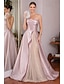 A-linje Telång Cocktailklänningar Festklänningar Elegant Ärmlös Prydd med juveler Bröllop Formell Rosa klänning Satäng med Tryck