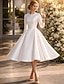 Balklänning Telång Cocktailklänningar Festklänningar söt stil Liten vit klänning Långärmad Prydd med juveler Bröllop Höstens bröllopsgäst Satäng med Plisserat Ren Färg