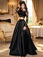 Tvådelad Svepsläp Balklänningar Den lilla svarta Långärmad Prydd med juveler Bal Formell kväll Satäng Spets med Ren Färg