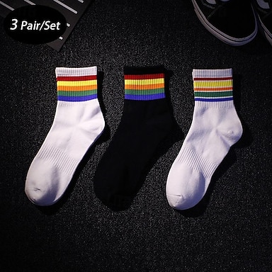 Herr 3-pack Multipack Socka Crew strumpor Löparstrumpor Vardagliga strumpor Vit + Vit + Svart Svart Färg Regnbåge Sport & Utomhus Dagligen Semester Grundläggande Medium Vår Höst Mode Ledigt