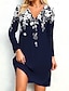 Dam Mini klänning Vardagsklänning Klänning med tryck Mode Modern Utomhus Semester Dagligen Normal Blommig Långärmad V-hals Färgglad Svart Rodnande Rosa Höst Vinter