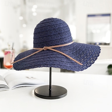 hattar syntetfiber bucket hat stråhatt solhatt casual semester retro solskydd med rosett snörning huvudbonad huvudbonad