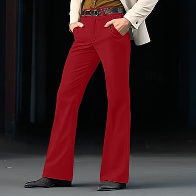 Herr Kostymbyxor Flared byxor Bell Botten Långbyxor Sammetsbyxor Ficka Slät Komfort Mjuk Fullängd Fest Jul Dagligen Mode Streetwear Svart Rubinrött