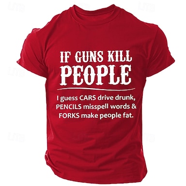 Mäns Sarkastisk 'Om vapen dödar människor' T-Shirt - Vitsig Grafisk Tee med Mörk Humor Ordspråk Citat