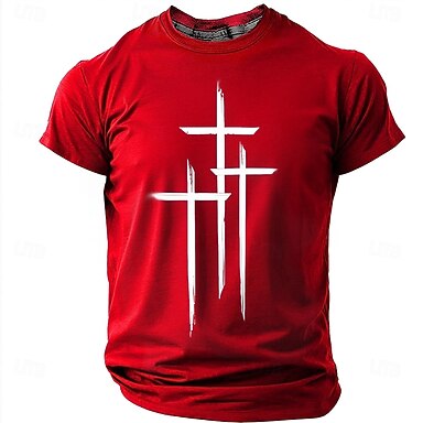 modern herrtröja med grafisk tryck, röd och svart, gradient, heltäckande tryck, rund halsringning, kortärmad, kristen tro, present till honom, designerkläder, kläder