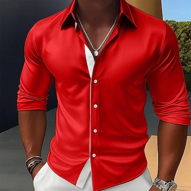Herr Skjorta Satinskjorta Casual skjorta Knapp upp skjorta Balskjorta Slät Formell Bröllop Svart Rubinrött Kungsblå Guld Långärmad Kavajslag Alla årstider Kläder Färgblock