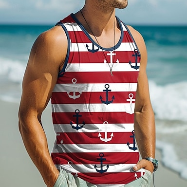 Herr Rutig Roder T-shirt Linne Ärmlös T-shirt 3D-tryck Rund hals Skjorta Semester Ledigt Hawaiisk Helgdag Rubinrött Sommar Vår Kläder S M L XL XXL XXXL
