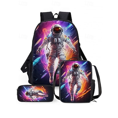 3-delat astronautryggsäckset för barn – färgglad skolryggsäck med galaxtryck, isolerad lunchväska och pennfodral för pojkar och flickor, perfekt för skol-, rese- och födelsedagspresenter