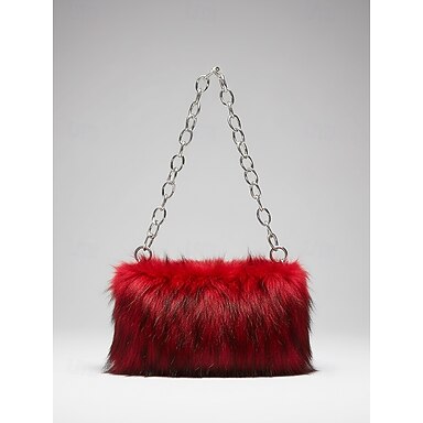 Damväska med fuskpälskedja – plyschig och snygg med syntetiskt pälsmaterial, finns i flera färger, perfekt för kvällsfester och avslappnade utflykter