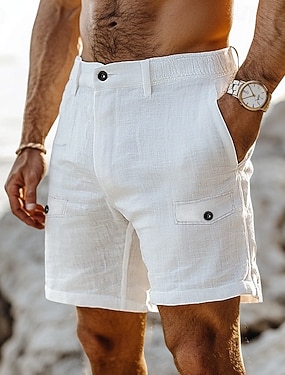Herr Shorts Linne Shorts Sommarshorts Beach Shorts Ficka Elastisk midja Knappar Slät Komfort Andningsfunktion Kort Ledigt Dagligen Helgdag Mode Klassisk Stil Vit Kaki