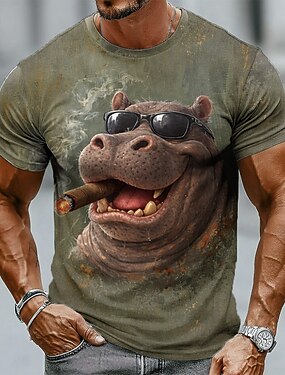 Herr Djur Rolig T-shirt Kortärmad T-shirt 3D-tryck Rund hals Skjorta drivna Designer Fest Helgdag Blå Grå Sommar Vår Kläder S M L XL XXL XXXL