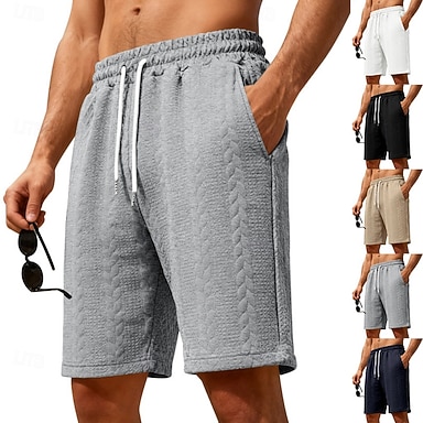Herr Våffelshorts Shorts Beach Shorts Casual shorts Ficka Elastisk midja Slät Komfort Andningsfunktion Knelängd Ledigt Utomhus Strand Semester Mode Svart Vit Microelastisk