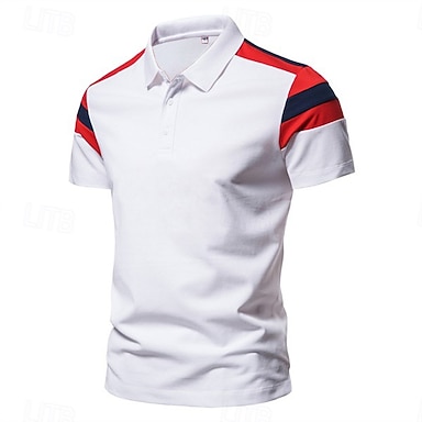 Herr POLO Shirt Knapp upp Polos Ledigt Sport Kavajslag Kortärmad Mode Grundläggande Färgblock Lappverk Sommar Normal Svart Rubinrött Himmelsblå Brun POLO Shirt