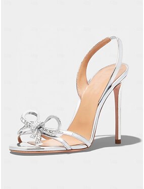 Damklackar med silverfärgad rosett, eleganta slingback-sandaler med hög klack för bruden, chic bröllop &kvällsceremoni