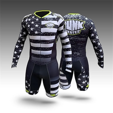 Herr Triathlondräkt Kortärmad triathlon Sommar Vår Höst Silver Ljusgul Mörkgrå Grafisk Cykel Cykel Fitness, löpning och yoga Stretch Heltäckande Lykra sporter Kläder
