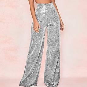 Retro / vintage 70-talet Häftig Maxi Byxor med vida ben Disk Hög midja Metallisk Paljett Maskeradkläder Dam Halloween Karnival musikfestival Prideparad Retro-temafest Vuxna Byxor Alla årstider