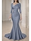 Sjöjungfru trumpet Svepsläp Balklänning med kappa Kvälls klänningar Formell klädsel Elegant Silkig 3/4 ärm V-hals Bröllop Formell Caper Satäng med Strass Veckad Bård