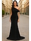 Åtsmitande Svepsläp Bröllopsgästklänning Formell klädsel Aftonklänning Balklänningar Elegant Ärmlös Enaxlad Bal Formell Satäng Stretchtyg med Färgblock