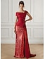 Sjöjungfru trumpet Svepsläp Balklänningar Kvälls klänningar Quinceanera klänningar Balklänning Elegant Ärmlös Över axeln Bal Kvällsfest Paljetter Bar rygg med Paljett