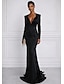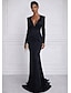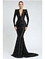 Sjöjungfru trumpet Svepsläp Golvlång Kvälls klänningar Balklänning Formell klädsel Elegant Kändis Stil Formell / Svart slips Långärmad V-hals Bröllop Formell Stretch crepe med Slits