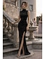 Åtsmitande Svepsläp Balklänning med kappa Kvälls klänningar Formell klädsel Elegant glittrande Kändis Stil 3/4 ärm Hög hals Trädgårdsfest Bröllop Stretch crepe med Veckad