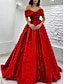 Balklänning A-linje Svepsläp Kvälls klänningar Balklänning med överkjol Formell klädsel Elegant glittrande Halvlång ärm V-hals Bröllop Formell Satäng Jersey med Glitter Plisserat