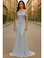 Åtsmitande Svepsläp Golvlång Bröllopsgästklänning Formell klädsel Aftonklänning Balklänningar Elegant Ärmlös Axelbandslös Bal Formell Satäng med Rosett(er)