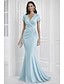 Sjöjungfru trumpet Svepsläp Kvälls klänningar Elegant Kortärmad V-hals Bröllop Formell Stretch crepe med Veckad Krusad