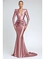 Sjöjungfru trumpet Svepsläp Kvälls klänningar Elegant Kändis Stil Långärmad V-hals Trädgårdsfest Bröllop Satäng med Enfärgat