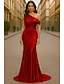 Sjöjungfru trumpet Svepsläp Balklänningar Kvälls klänningar Balklänning Formell klädsel Elegant Kortärmad Över axeln Jul Formell Ficka Stretch crepe med Plisserat