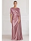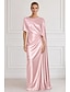 Sjöjungfru trumpet Svepsläp Kvälls klänningar Elegant Ärmlös Enaxlad Bröllop Formell Rosa klänning Stretchig satäng med Veckad